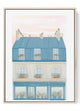 Charming Café Watercolor Print – Rooftop Garden Corner With Parisian CharmThis whimsical watercolor features a cozy café with a rooftop garden, soft blue facade, and charming seating—perfect for adding warmth to any space.