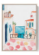Sunlit Coastal Terrace Wate...Coastal Boats and Cactus Watercolor Print
