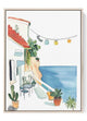 Seaside Balcony Watercolor ...Sunlit Coastal Terrace Watercolor Print