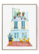 Cozy Rooftop Garden Café – ...Paris Courtyard Charm – Watercolor Art Print – Blue Roofs & Green Plants