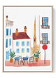 European Townhouses with Outdoor Café – Watercolor Art Print