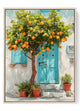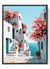 Festive Holiday Ornament Ar...Mediterranean Escape Art Print – Greek Island Wall Art with Bougainvillea